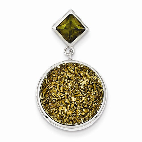 Sterling Silver with Yellow Druzy & Green CZ Round Pendant