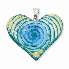 Sterling Silver Yellow, Blue, Green Dichroic Glass Heart Pendant