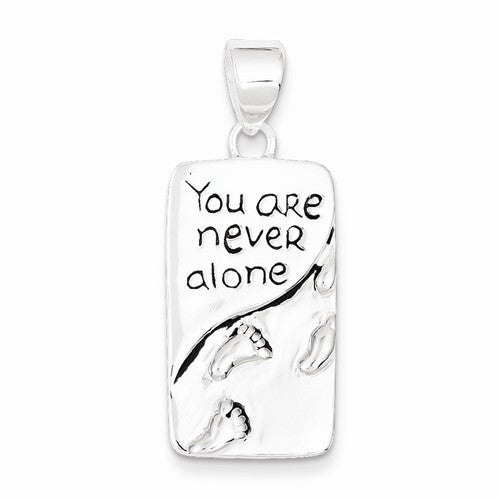 Sterling Silver You Are Never Alone Antiqued Footprint Pendant