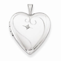 Metal: Sterling SilverLength:21 mmWidth:16 mmGemstones: DiamondDiamond Weight: 0.015 CTFinish: Satin, Diamond-cut, Holds 2 photosFree U.S. Shipping for orders over $99 Protected by our 30-Day Risk Free Returns!
