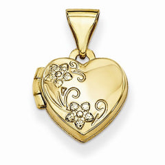 Metal: 14k Yellow & RhodiumLength:25 mmWidth:17 mmFinish: Polished, Rhodium, Textured, Opens, Sentiment on back, Holds 2 photosFree U.S. Shipping for orders over $99 Protected by our 30-Day Risk Free Returns!