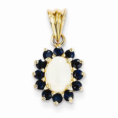 Metal: 14k Yellow GoldLength:19 mmWidth:9 mmGemstones: Sapphire, Opal, DiamondGem Weight: 1.44 CTFinish: Polished, Open, cut-out backFree U.S. Shipping for orders over $99 Protected by our 30-Day Risk Free Returns!