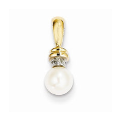 Metal: 14k Yellow GoldLength:14 mmWidth:6 mmGemstones: Diamond, PearlDiamond Weight: 0.005 CTFinish: PolishedFree U.S. Shipping for orders over $99 Protected by our 30-Day Risk Free Returns!