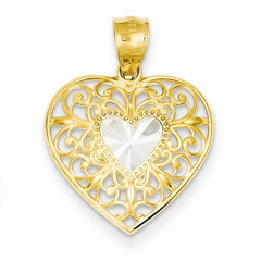Metal: 14k Yellow & RhodiumLength:36 mmWidth:27 mmFinish: Diamond-cut, Polished, rhodium, Filigree, TexturedFree U.S. Shipping for orders over $99 Protected by our 30-Day Risk Free Returns!