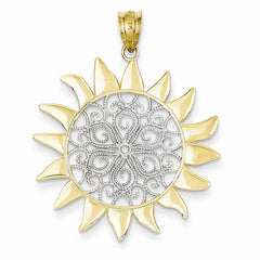 Metal: 14k Yellow & RhodiumLength:36 mmWidth:36 mmFinish: Diamond-cut, Polished, Filigree, TexturedFree U.S. Shipping for orders over $99 Protected by our 30-Day Risk Free Returns!