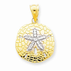 Metal: 14k Yellow & RhodiumLength:57 mmWidth:34 mmFinish: Diamond-cut, Die struck, Polished back, rhodium, Polished & SatinFree U.S. Shipping for orders over $99 Protected by our 30-Day Risk Free Returns!