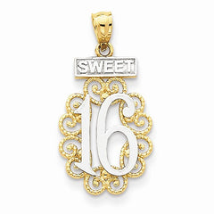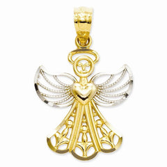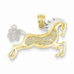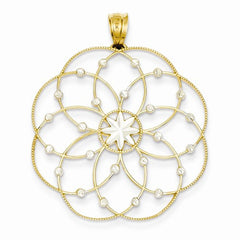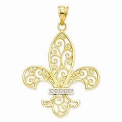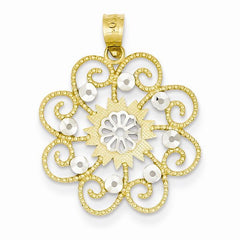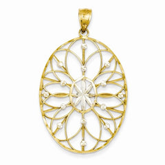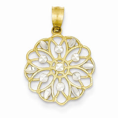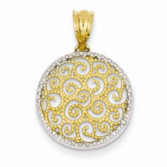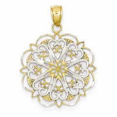 Metal: 14k Yellow & RhodiumLength:35 mmWidth:25 mmFinish: Diamond-cut, Polished, rhodium, Filigree, TexturedFree U.S. Shipping for orders over $99 Protected by our 30-Day Risk Free Returns!