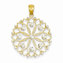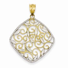 Metal: 14k Yellow & RhodiumLength:34 mmWidth:25 mmFinish: Diamond-cut, Polished, rhodiumFree U.S. Shipping for orders over $99 Protected by our 30-Day Risk Free Returns!