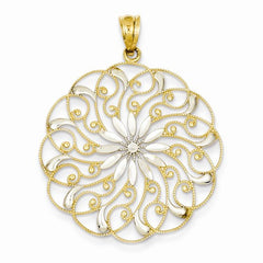 Metal: 14k Yellow & RhodiumLength:36 mmWidth:41 mmFinish: Diamond-cut, rhodium, Filigree, TexturedFree U.S. Shipping for orders over $99 Protected by our 30-Day Risk Free Returns!