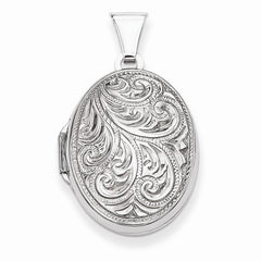 Metal: Sterling SilverLength:26 mmWidth:17 mmFinish: Polished, Patterned, Holds 2 photosFree U.S. Shipping for orders over $99 Protected by our 30-Day Risk Free Returns!