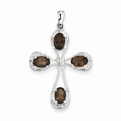 Metal: Sterling SilverLength:23 mmWidth:11 mmGemstones: Smoky Quartz, DiamondGem Weight: 0.33 CTFinish: Polished, Rhodium-plated, cut-out backFree U.S. Shipping for orders over $99 Protected by our 30-Day Risk Free Returns!