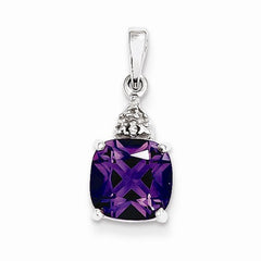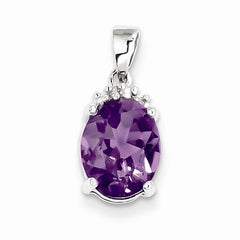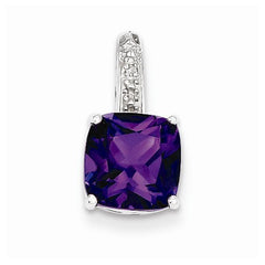 Metal: Sterling SilverLength:18 mmWidth:11 mmGemstones: Amethyst, DiamondDiamond Weight: 0.01 CTGem Weight: 1.85 CTFinish: Polished, Rhodium-platedFree U.S. Shipping for orders over $99 Protected by our 30-Day Risk Free Returns!