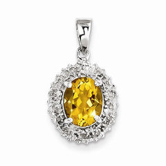Metal: Sterling SilverLength:25 mmWidth:14 mmGemstones: Citrine, DiamondDiamond Weight: 0.01 CTGem Weight: 3.3 CTFinish: Polished, Open backFree U.S. Shipping for orders over $99 Protected by our 30-Day Risk Free Returns!