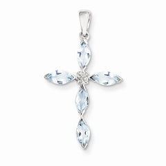Metal: Sterling SilverLength:34 mmWidth:22 mmGemstones: Aquamarine, DiamondDiamond Weight: 0.01 CTGem Weight: 1.15 CTFinish: Polished, Open back, Rhodium-platedFree U.S. Shipping for orders over $99 Protected by our 30-Day Risk Free Returns!