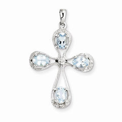 Metal: Sterling SilverLength:22 mmWidth:12 mmGemstones: Aquamarine, DiamondGem Weight: 0.33 CTFinish: Polished, Rhodium-plated, cut-out backFree U.S. Shipping for orders over $99 Protected by our 30-Day Risk Free Returns!