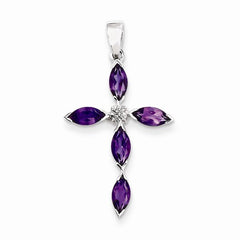 Metal: Sterling SilverLength:24 mmWidth:12 mmGemstones: Amethyst, DiamondDiamond Weight: 0.02 CTGem Weight: 1.5 CTFinish: Polished, Rhodium-platedFree U.S. Shipping for orders over $99 Protected by our 30-Day Risk Free Returns!