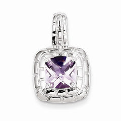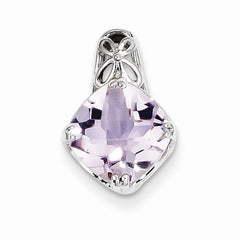 Metal: Sterling SilverGemstones: Pink QuartzGem Weight: 2.18 CTFinish: Polished, Rhodium-plated, Checkerboard-cut, Decorative bailFree U.S. Shipping for orders over $99 Protected by our 30-Day Risk Free Returns!