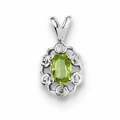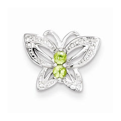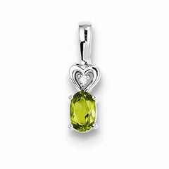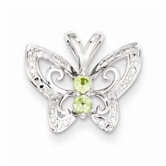 Metal: Sterling SilverCharm/Element Length:12Charm/Element Width:14Gemstones: Peridot, DiamondDiamond Weight: 0.01 CTGem Weight: 0.14 CTFinish: PolishedFree U.S. Shipping for orders over $99 Protected by our 30-Day Risk Free Returns!