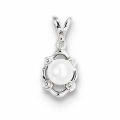 Metal: Sterling SilverLength:16 mmWidth:10 mmGemstones: Pearl, DiamondDiamond Weight: 0.07 CTGem Weight: 0.75 CTFinish: Polished, Open back, Rhodium-platedFree U.S. Shipping for orders over $99 Protected by our 30-Day Risk Free Returns!