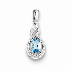Metal: Sterling SilverLength:25 mmWidth:15 mmGemstones: Swiss Blue Topaz, DiamondDiamond Weight: 0.085 CTFinish: Polished, Rhodium-plated, Open, cut-out backFree U.S. Shipping for orders over $99 Protected by our 30-Day Risk Free Returns!