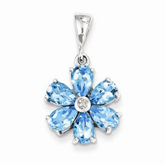 Metal: Sterling SilverLength:13 mmWidth:17 mmGemstones: Swiss Blue Topaz, DiamondDiamond Weight: 0.014 CTGem Weight: 0.49 CTFinish: Polished, Rhodium-plated, OpenFree U.S. Shipping for orders over $99 Protected by our 30-Day Risk Free Returns!