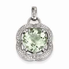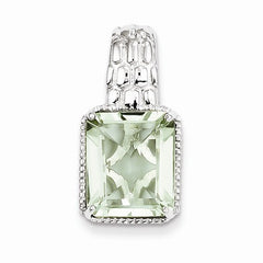 Metal: Sterling SilverGemstones: Green QuartzGem Weight: 5 CTFinish: Polished, Rhodium-platedFinish: cut-out backFree U.S. Shipping for orders over $99 Protected by our 30-Day Risk Free Returns!