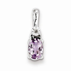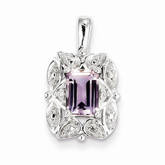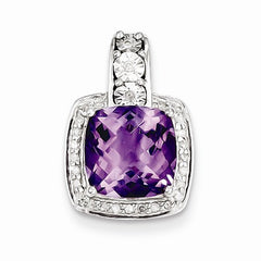 Metal: Sterling SilverCharm/Element Length:18Charm/Element Width:13Gemstones: Amethyst, DiamondDiamond Weight: 0.11 CTGem Weight: 2.8 CTFinish: Polished, Rhodium-platedFree U.S. Shipping for orders over $99 Protected by our 30-Day Risk Free Returns!