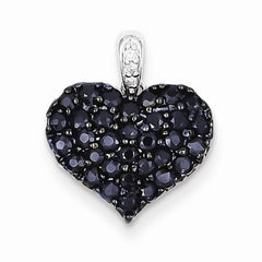 Metal: Sterling SilverLength:17 mmWidth:14 mmGemstones: Diamond, SapphireDiamond Weight: 0.02 CTGem Weight: 1.09 CTFinish: Polished, Rhodium-plated, Hidden bail, Decorative bailFree U.S. Shipping for orders over $99 Protected by our 30-Day Risk Free Returns!
