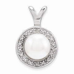 Metal: Sterling SilverLength:14 mmWidth:10 mmGemstones: Pearl, DiamondDiamond Weight: 0.01 CTGem Weight: 1.7 CTFinish: Polished, Rhodium-platedFree U.S. Shipping for orders over $99 Protected by our 30-Day Risk Free Returns!