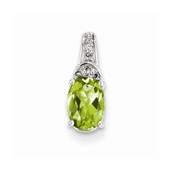 Metal: Sterling SilverLength:16 mmWidth:9 mmGemstones: Peridot, DiamondGem Weight: 0.85 CTFinish: Polished, Rhodium-platedFree U.S. Shipping for orders over $99 Protected by our 30-Day Risk Free Returns!