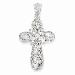 Metal: Sterling SilverLength:23Width:14Gemstones: Cubic Zirconia (CZ)Finish: Satin, Cut-outFree U.S. Shipping for orders over $99 Protected by our 30-Day Risk Free Returns!