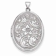 Metal: 14k White GoldLength:30 mmWidth:21 mmFinish: Polished, Opens, Holds 2 photosFree U.S. Shipping for orders over $99 Protected by our 30-Day Risk Free Returns!