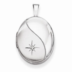 Metal: Sterling SilverLength:19 mmWidth:15 mmGemstones: DiamondDiamond Weight: 0.01 CTFinish: Polished & Satin, Patterned, Holds 2 photosFree U.S. Shipping for orders over $99 Protected by our 30-Day Risk Free Returns!