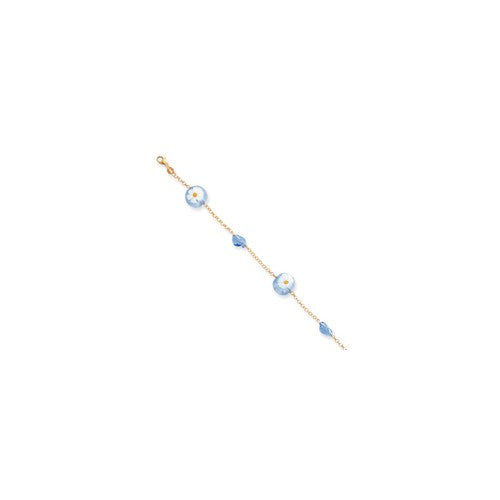 14K Yellow Gold Polished Venice Glass with Flower Imprint & Beaded Fancy Bracelet
