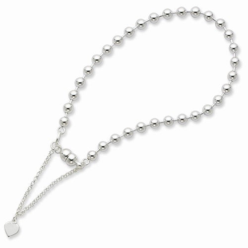 Amore La Vita 4mm Sterling Silver Rhodium Plated Beaded Dangling Heart Magnetic Clasp Bracelet