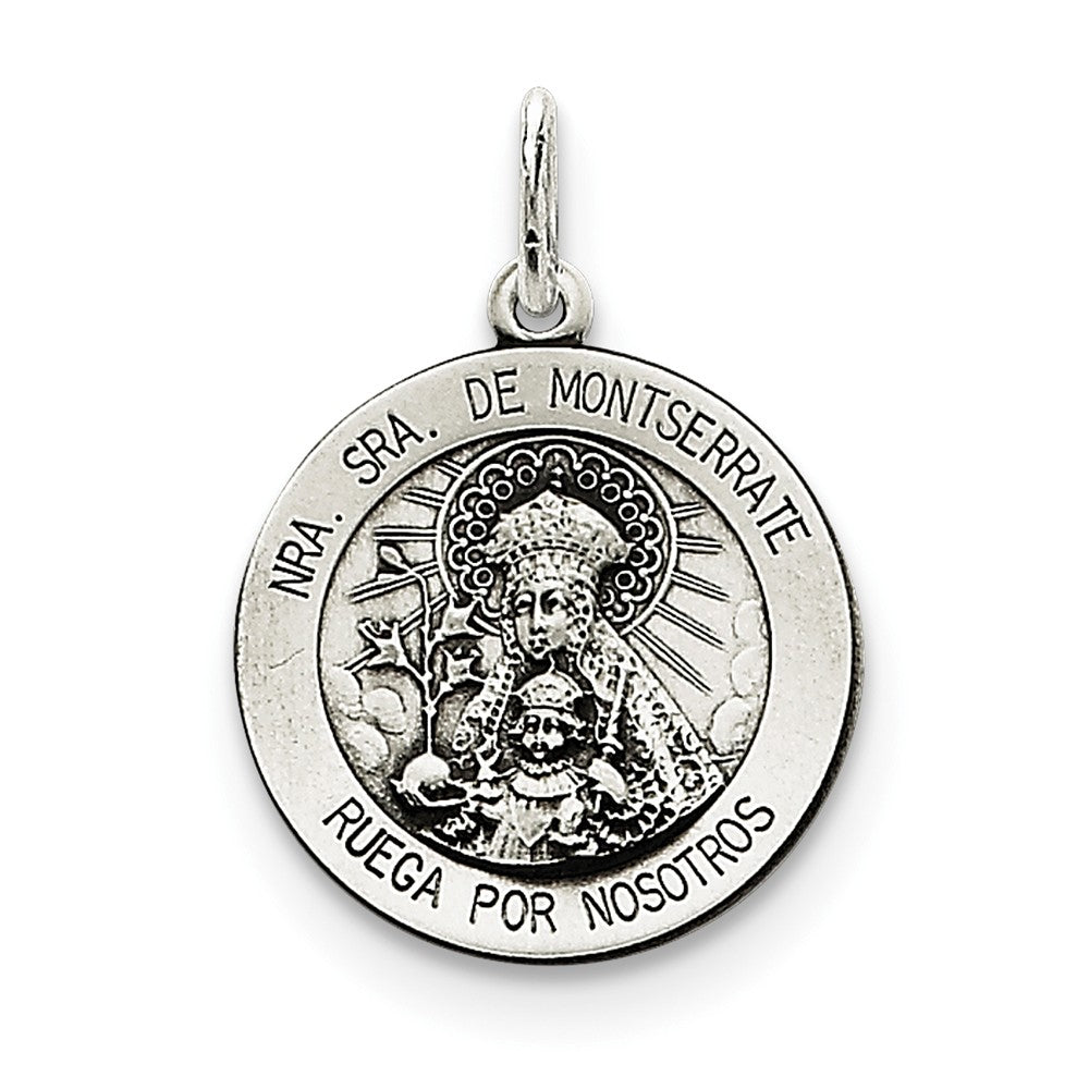 Antiqued Montserrate Medal, Charm in Sterling Silver