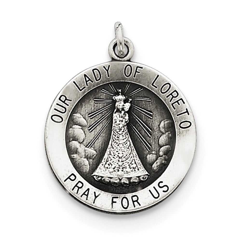 Antiqued Our Lady of Loreto Medal, Charm in Sterling Silver