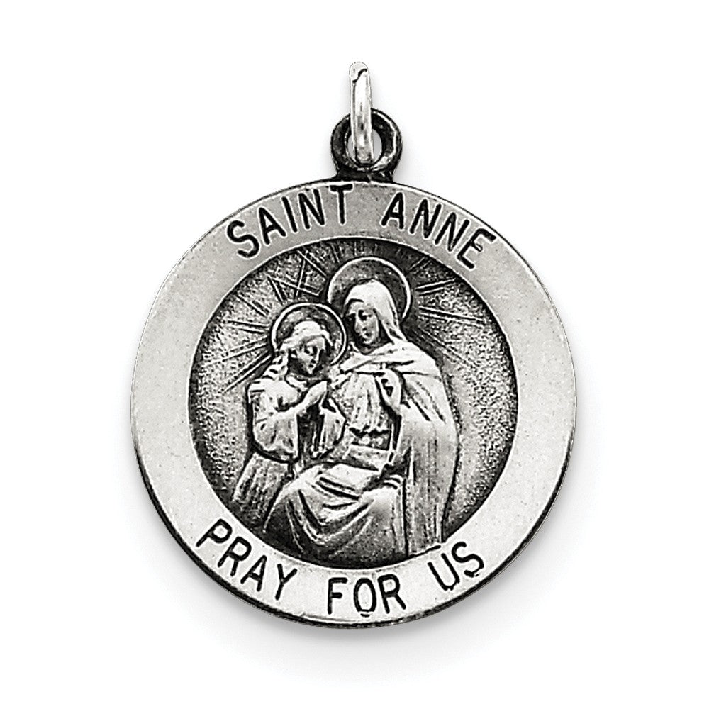 Antiqued Saint Anne Medal, Fine Charm in Sterling Silver
