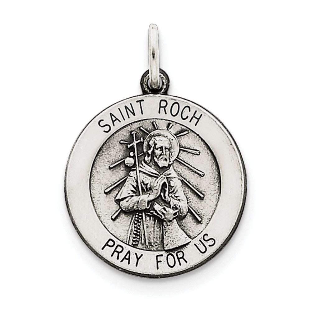 Antiqued Saint Roch Medal, Classy Charm in Sterling Silver