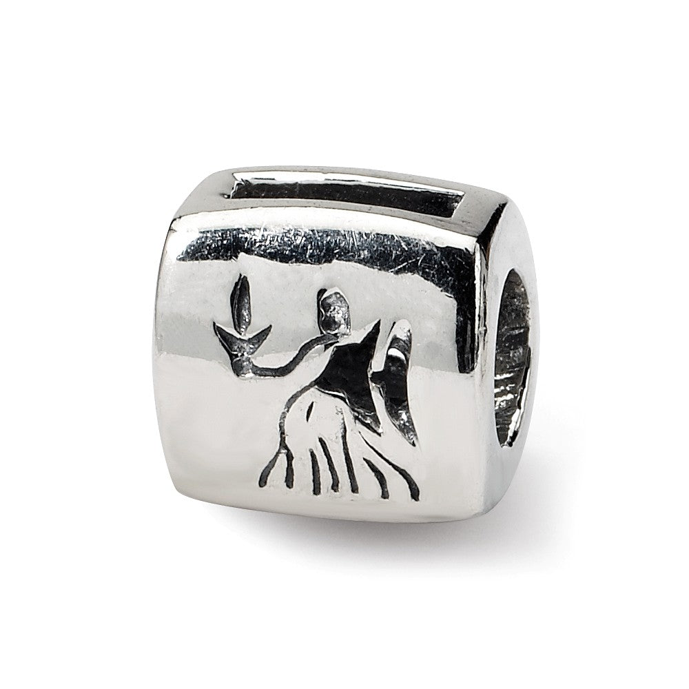 Virgo Zodiac Antiqued Charm Bead in Sterling Silver