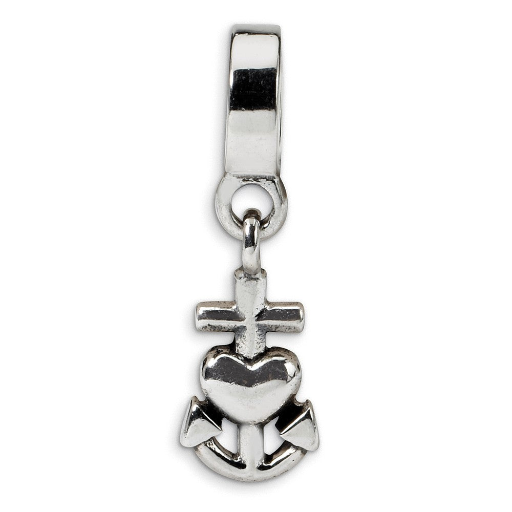 Heart, Cross & Anchor Charm Dangle Bead in Sterling Silver