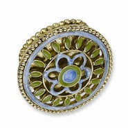Brass-tone Blue & Green Enamel Floral Design Stretch Ring