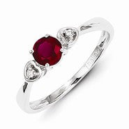 Sterling Silver w/Rhodium Plated Diamond and Ruby Round Ring