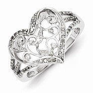 Sterling Silver w/Rhodium Plated Diamond Heart Ring