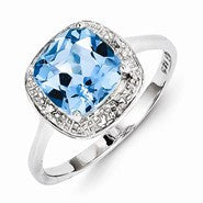 Sterling Silver w/Rhodium Plated Diamond & Light Swiss Blue Topaz Ring