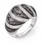 Sterling Silver with CZ and Grey Marble Style Enameled Domed Ring