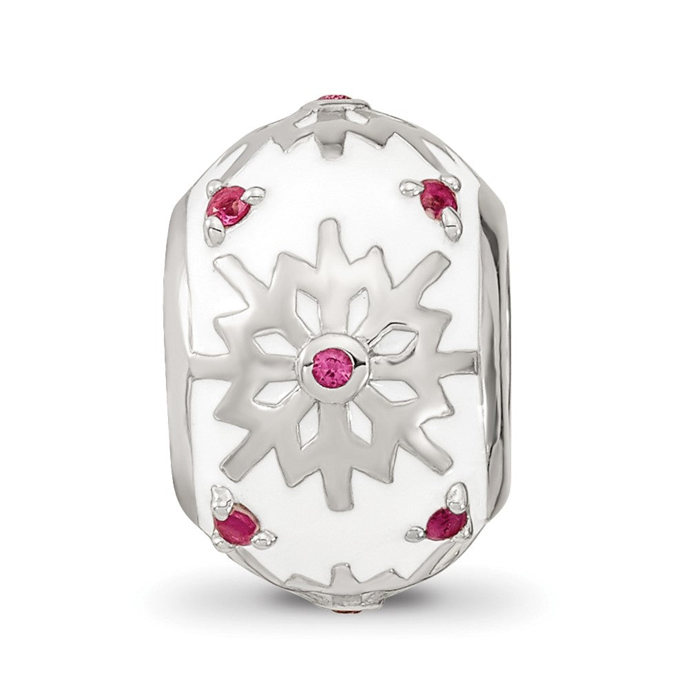 Enamel Crystal Snowflake Charm Bead in Sterling Silver