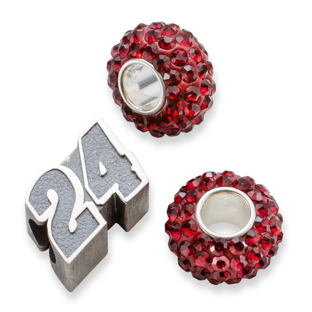 Antiqued Sport,NASCAR #24 William Byron 2 Crystal Charm Beads Set in Sterling Silver