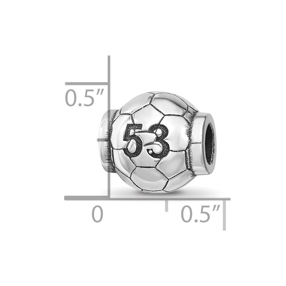 High Polished Personalized Soccer Ball Charm Bead in Sterling Silver
