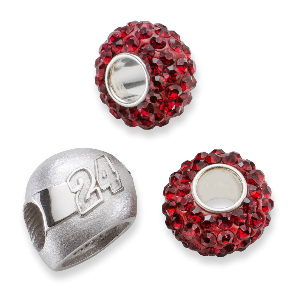 Sport,NASCAR #24 William Byron 2 Crystal & Helmet Charm Beads,Set in Sterling Silver